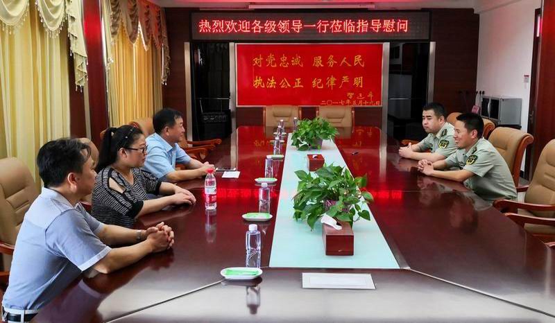 在八一建军节来临之际,731,方邱湖农场党委书记李朝钦、副书记王梅一行带着对人民子弟兵的深情厚谊,到凤阳县消防大队开展八一拥军慰问活动,向消防官兵表达了节日问候和良好祝愿,并送去清凉慰问金。