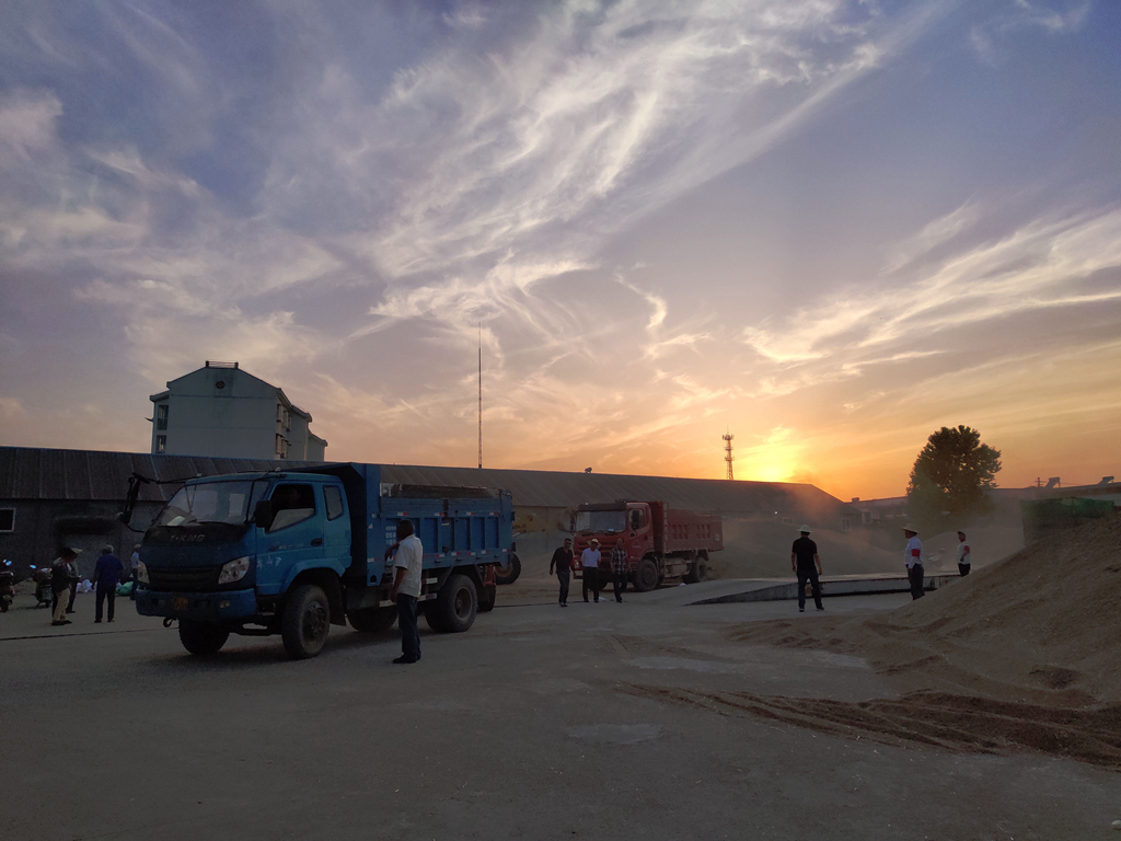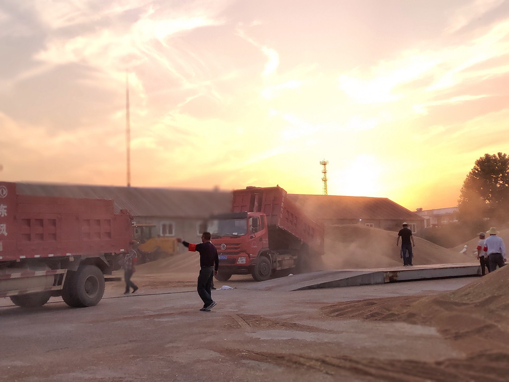午收的主打色是金色,成群结队的大型收割机从清晨工作到夕阳西下,收割的小麦直接运往农场各个农服收购站。运粮车从上称、检测、卸粮到出站不过十多分钟的时间,迅速快捷而有序。(华阳河农场公司  包丹凤)