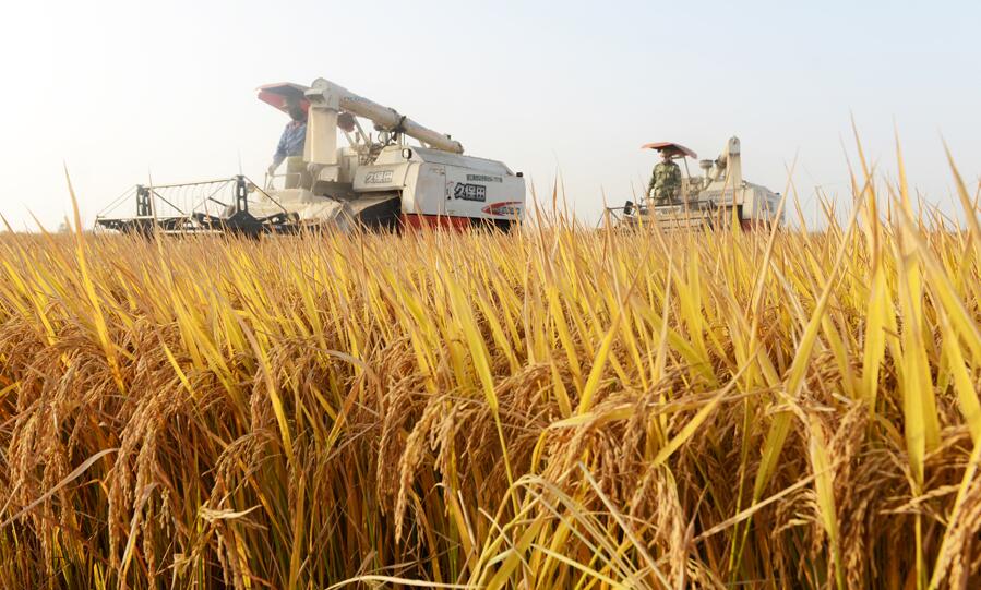 10月30日,安徽农垦华阳河农场公司一块块稻田翻滚着金色的波浪。运输车在公路上穿梭、收割机在田野里歌唱,农场公司田间、地头和粮食烘干中心一派繁忙,5万亩稻虾田绘出一副副壮美的丰收图景,处处飘逸着稻谷的芬芳。