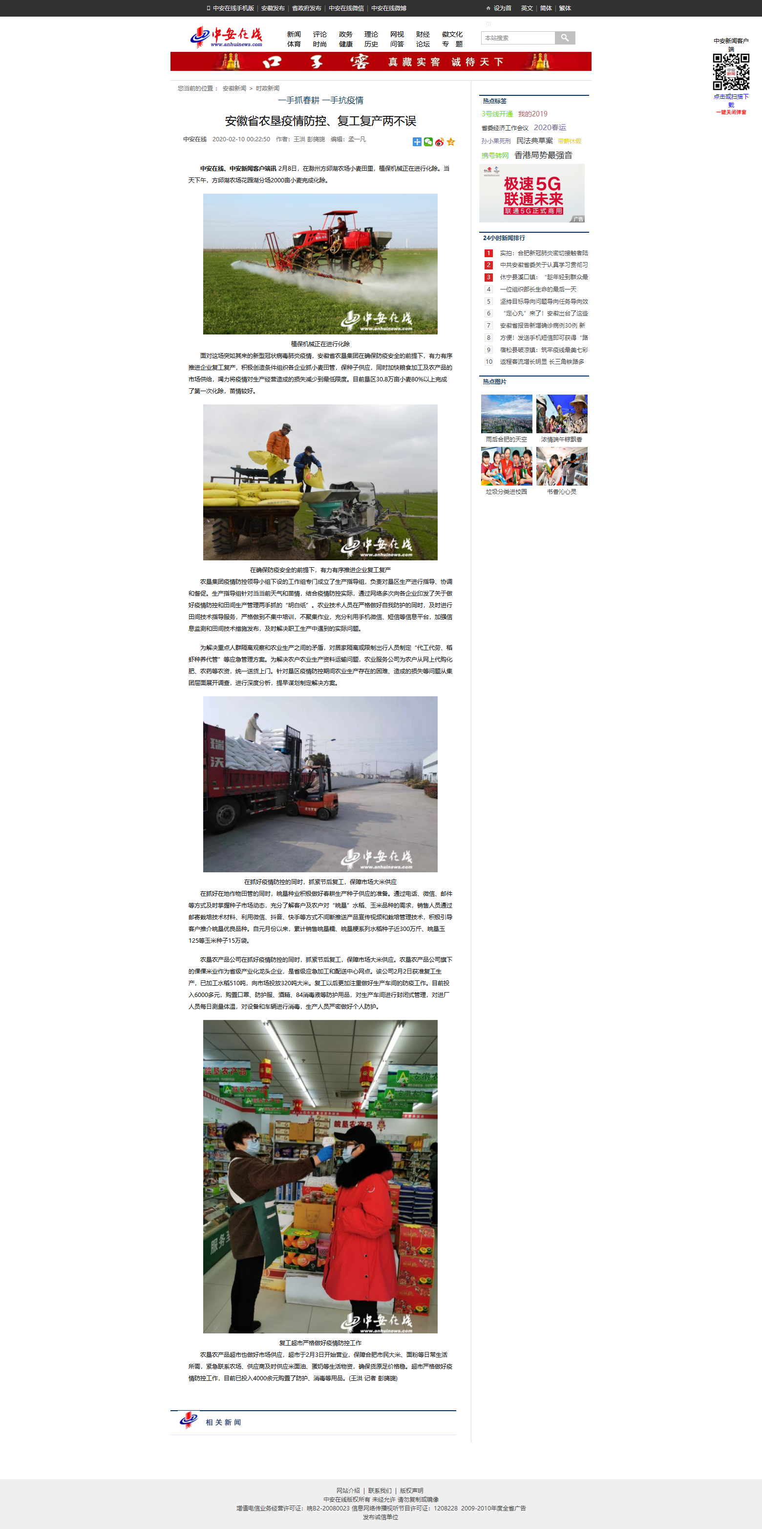 中安在线:安徽农垦疫情防控、复工复产两不误