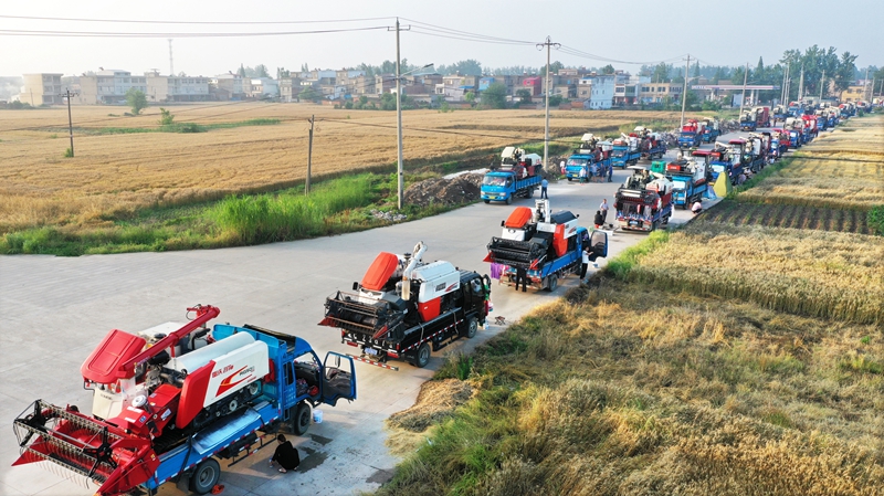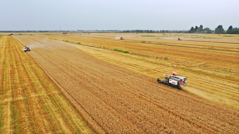 6月4日,农垦寿西湖农场5.47万亩小麦收割进入高峰期,当天有近百台收割机在金色的麦田里来往穿梭,机器轰鸣,麦浪翻滚,一派喜人的丰收景象。今年安徽农垦夏粮再获丰收,基本实现优质专用小麦种植面积“单种、单收、单储、专用”两个100%全覆盖的预期目标