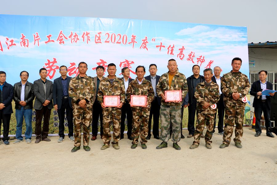 10月29日,由省总工会、省农垦集团有限公司工会主办、省农垦集团工会江南片区、皖河农场公司工会承办的2020年度“十佳高效种养能手”劳动竞赛在皖河农场公司顺利举行。省农垦集团公司工会主席姜三豹率党群部负责同志出席活动。江南片区各成员单位工会负责同志、皖河农场公司领导班子成员及相关部门同志、种养大户代表参加活动。活动由片区工会负责人徐英晴主持。