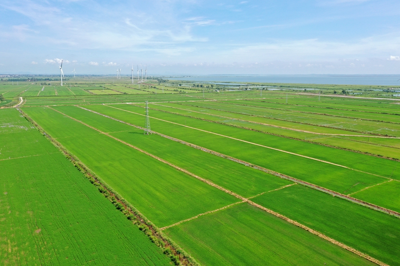 图为农垦华阳河农场5万亩全国绿色食品原料(水稻)标准化生产基地一角  李龙 摄