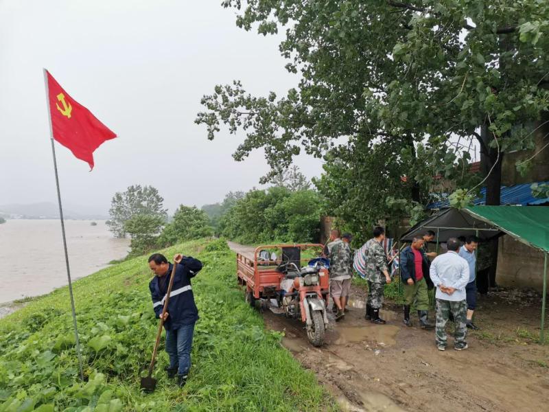 汛情就是命令!718日农场公司接到凤台县防汛指挥部设防淮河通知,闻汛而动,立即启动防汛预案。分管领导带领防汛办同志查勘堤防责任段,人员调动、物资准备同时启动,风雨中两小时完成人员集结和防汛值班点设置,为充分发挥党员在防汛抗洪战斗中的先锋模范作用,东农党委即时成立淮河防汛(临时)党支部,在搭起值班棚的同时让党旗也在淮河大堤上高高的飘扬起来。