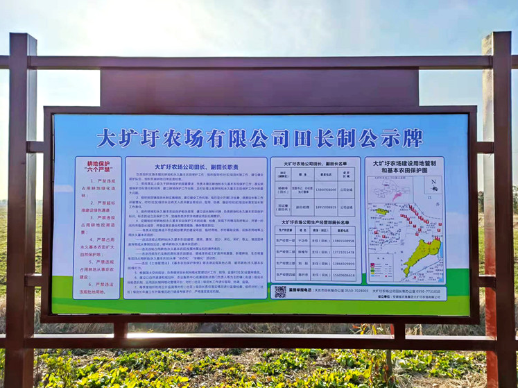 为深入贯彻落实党中央、国务院关于严格耕地保护的决策部署,进一步落实最严格的耕地保护制度,严守耕地保护红线。根据集团公司《关于推进安徽农垦田长制工作的通知》要求,农场公司党委高度重视,迅速与天长市有关部门进行对接,并结合实际制定印发了《大圹圩农场公司田长制工作方案》,建立了农场公司、生产经营部二级田长制责任体系,明确了耕地保护工作任务,制定了网格化定期巡查制度,完善了监督考核机制,形成了“横到边、纵到底,网格化、全覆盖”的耕地保护监管新格局。