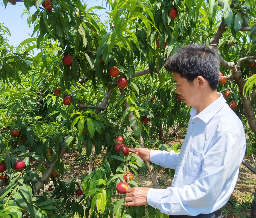 引进优质品种是关键。二分场拥有优质果园面积1000多亩,这与分场场长岳长安的辛勤努力分不开的。多年来,他带领职工多次外出考察新品种桃的生长习性、气候环境、土壤条件和市场认可度,为分场发展优质桃创造了良好的条件,也为全场新品种的发展做出了示范引领。