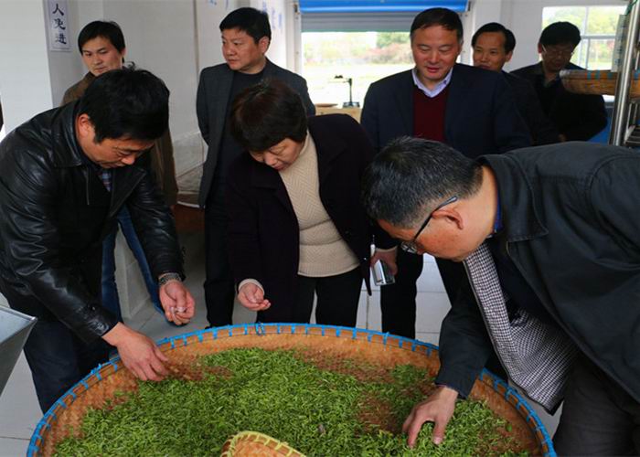 32728日,安徽农垦集团总会计师高有荣率总助凌军及资产部、审计室负责人一行在皖垦茶区调研督导,实地检查了宝莲山文化陵园、十字铺茶兴小区改造、青草湖泵站建设、敬亭绿雪生产线升级、祠山岗加油加气站等在建项目进展情况,在祠山岗黄金芽茶生产基地、敬亭绿雪公司生产车间调研了春茶生产情况。