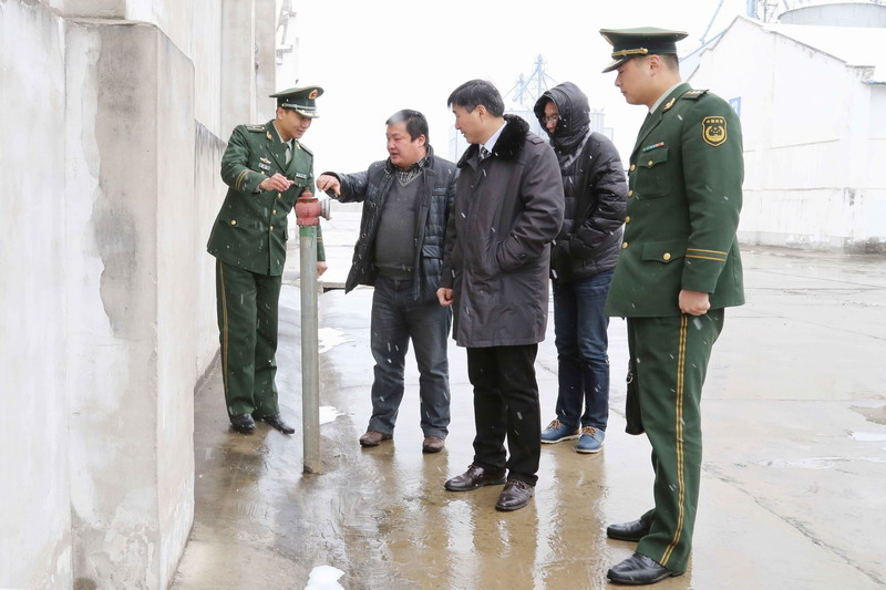 128上午,寿县政府安委会督查组冒雪督查了寿西湖农场春节前安全生产工作,场安委会常务副主任王国福等陪同。督查组一行实地察看了皖垦种业寿县分公司、西湖花园B区等区域,重点检查了安全消防设施设备的建设与配备情况。