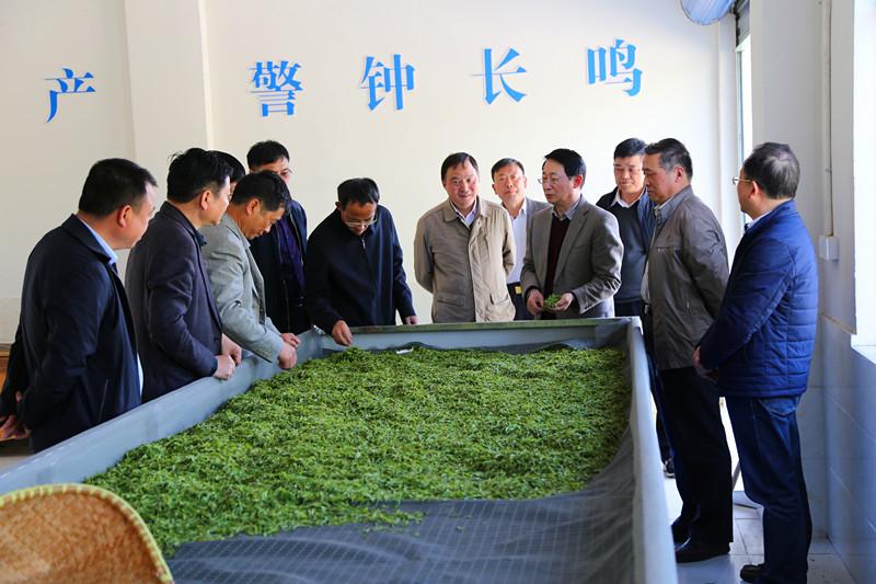 48,安徽农垦集团总经理刘超率农水科技部、土地部负责人到皖垦茶区开展调研督导,实地察看春茶生产情况后,在敬亭绿雪文化馆主持调研督导会。茶业集团领导班子及所属4个茶场场长参加调研汇报