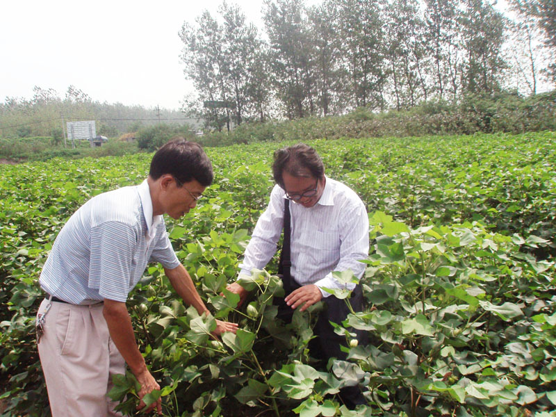 8月是18日上午,中国棉花研究所长江生态站站长、安徽省棉花高产创建技术指导小组成员周晓箭副研究员到华阳河农场,考察农场“棉花万亩高产公关片”工作进展情况。在场棉科所所长、五场场长徐和兴及有关农技人员的陪同下,周小箭站长深入棉田,认真细致地考察了棉花的生长情况,对该场该项目前期工作给予了高度评价,对下阶段工作提出了的建议,为该项目的顺利实施起到了积极地促进作用。