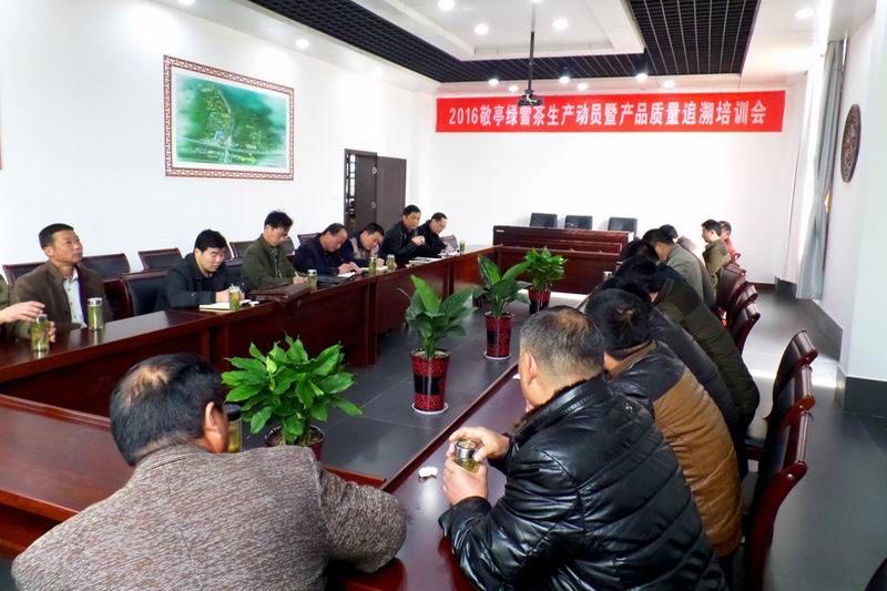 322,敬亭绿雪茶业有限公司召开春茶生产动员暨质量追溯培训会。皖垦茶业集团农业科技部、敬亭山茶场及各分场、原料基地负责人及质量追溯技术员参加会议。