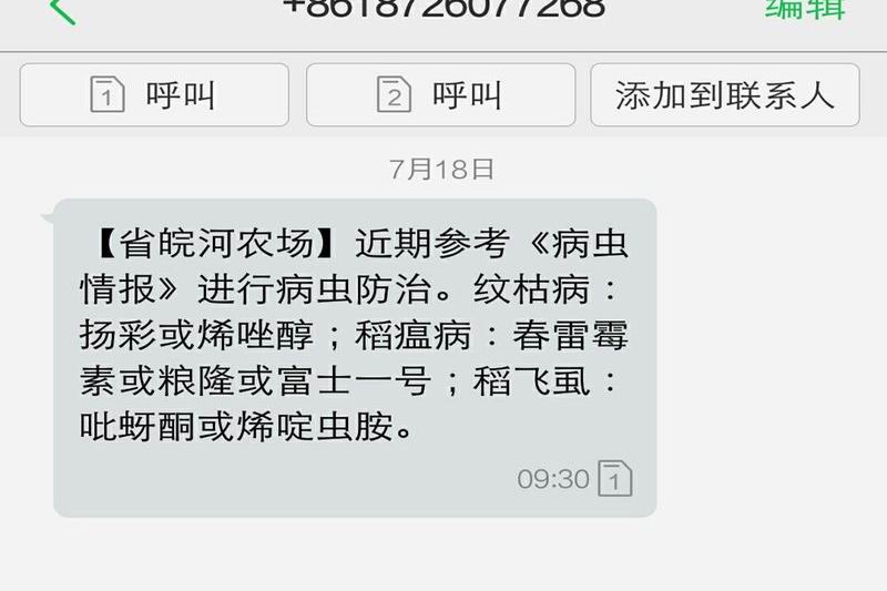 718,皖河农场开通农业生产技术服务信息平台,全场627个手机用户均接收到了农技服务短信。