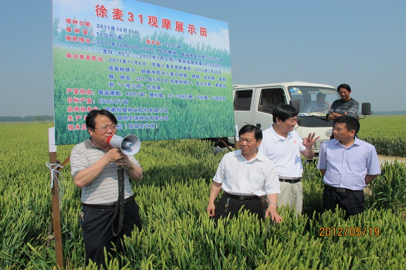 519上午,应河南省种子管理站系统盛情邀请,皖垦种业股份公司再次在许昌组织召开了徐麦31”现场观摩会。此前的515,皖垦种业组织河南省种子经销商在许昌召开的徐麦31”现场观摩会,在该省种子管理站系统乃至全省种业界引起了强烈反响和极大关注。