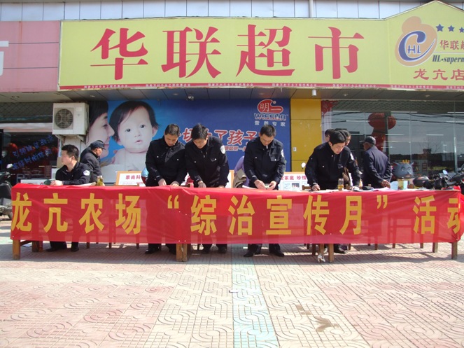 326,龙亢农场启动社会治安综合治理宣传月活动,行政执法分局的工作人员走上街头,向过往行人讲解相关法律法规,赠送宣传资料,并现场解答部分居民的咨询提问。
