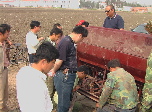 经过国家小麦专业组组长、山东农业大学于振文教授,宿州市农委,安徽农垦夹沟农场等三家的充分协商和酝酿,20061010日,国家级优质高产700公斤小麦攻关课题组的专家和技术人员来到我场,对小麦进行精量播种。专家组一行来到农场后,直接深入到攻关田块,组织播种工作。课题组人员按精量播种的要求,仔细清理播种仓,认真调整播种量和播种行距,清心检查机械的运行状况,每一个环节都做到精益求精,万无一失。经过一天的努力,攻关田块的小麦全部按每6公斤的用种量播种下去。