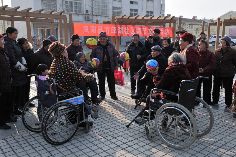 110下午,方邱湖农场社区广场举办了一场别开生面的两节文体活动。在参赛的200多名选手中,有一支特殊的群体:或是坐着轮椅快乐地传球,或是拄着拐杖兴高采烈地打着保龄球,或是参加夹弹珠、投筷子等比赛项目,这是农场的58名残疾人选手,每一个精彩动作都引得阵阵鼓励的掌声。