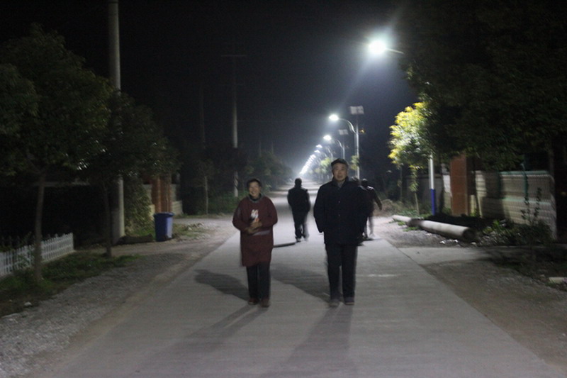 笔者近日从皖河农场场部自北向南走进三益回民分场居民区,只见沿中心水泥路整齐排列着造型时尚、崭新铮亮的一排排太阳能路灯,绵延数公里,每盏路灯上的月亮太阳构件极富穆斯林清真风情,此一场景着实抓人眼球。据悉,这是新近三益分场利用民族帮扶资金建成的又一项惠民工程,贯穿了回民居住区全境,路灯间距为30米,总共安装了206杆(盏),让全境夜晚一片光明。