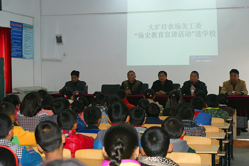 1114,大圹圩农场关工委组织老年志愿者到天长市大圹九年制学校开展场史教育宣讲活动,近300名师生参加听讲。