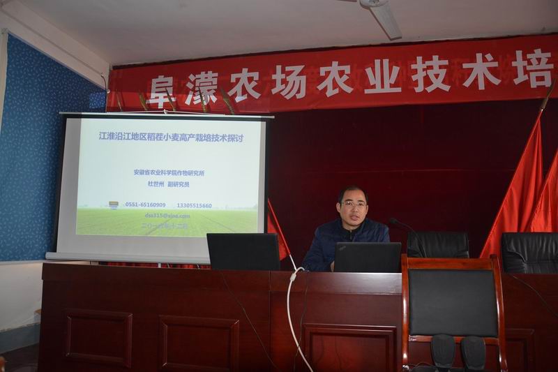 129,阜农场举办职工农技培训班,邀请安徽省农科院杜世州副研究员来场传授稻茬麦田管技术要点,结合在地小麦苗情长势进行具体指导,并就当前加强田管落实新技术新措施、促进稻茬小麦夺高产,同职工展开了课堂和田间互动。40多名参训职工均感到收获很大。(张焕)