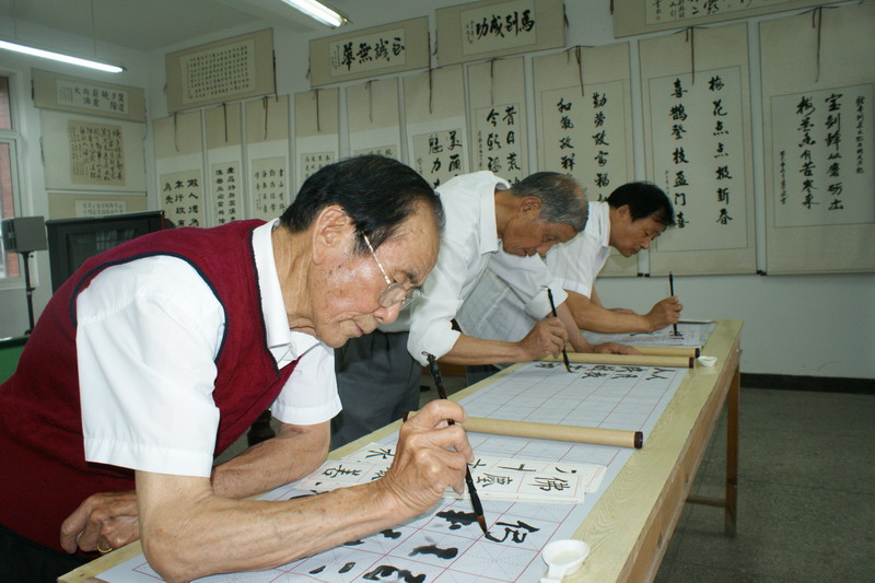 当您走进这间精心布置、充盈文艺范儿的活动室,会情不自禁挥墨感受一下书法独特的魅力。瞧,这几位老职工正沉静在练习书法的快乐里,乐而忘返,翰墨飘香。