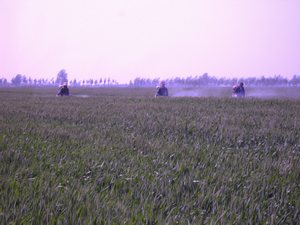 春节过后,农场加大对小麦田间管理的力度,多次召开专题会议,对田管工作进行部署,并请县植保站定期到场深入田间地头,监控病虫害发生情况及时提出防治措施。针对暖冬天气,病虫草害易发、多发的特点,2月下旬及时安排化除。3月上中旬根据田间小麦纹枯病发生情况,由场农业部门及时印制防治明白纸,发到每家每户,全场小麦普遍施药两遍,遏制了纹枯病的大发生。4月份正值小麦抽穗、杨花期,农场统一组织“一喷三防”用药,争取地方政府给予的优惠政策,以半价让利于农工,使全场小麦“一喷三防”两遍,用药率达到98%以上。