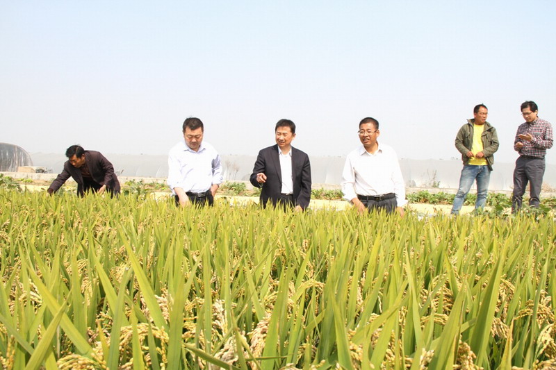 1014,省农垦集团党委委员、皖垦种业总经理王占廷率副总经理徐成银一行到种业怀远分公司调研指导水稻育种,龙亢农场总农艺师王永玖及种业怀远分公司负责人陪同。