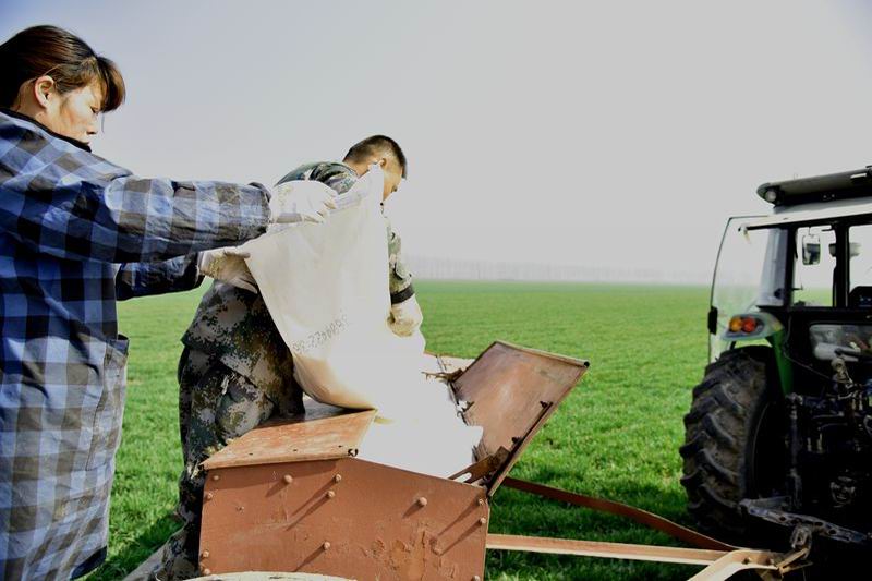 连日来,夹沟农场万亩麦田机声隆隆、肥料多多,打响春季田管战,奠定午季丰收年。广大职工家庭农场按照农场统一部署,抢抓天晴升温好形势,统一追施小麦返青肥,并与前期化除化控相衔接,补足小麦越冬期间缺失的营养。追肥工作于33全面完成。(郭旭)