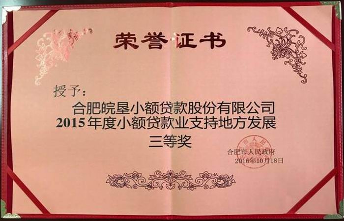 近日,合肥市人民政府通报表彰支持地方发展作出突出贡献的金融机构,安徽农垦皖垦小贷股份公司再度登榜荣获三等奖。