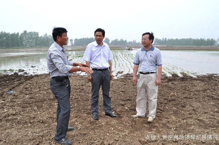 621,潘村湖农场场长柏华胜、党委书记林贤传再次来到第二农管区四分场旱改水现场检查指导工作。