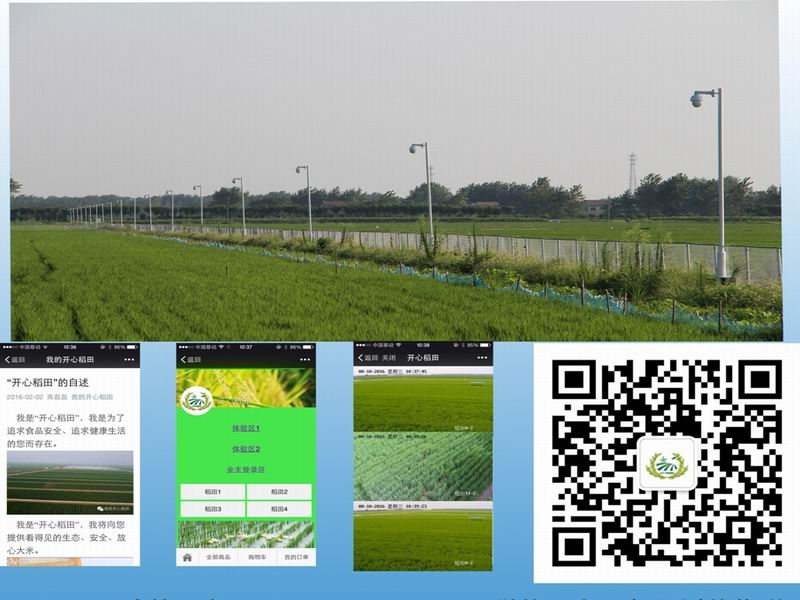 龙亢农场以满足公众对舌尖上的安全需求为目标,今夏推出了我的开心稻田,通过整合场内现代农业优势资源和物联网技术,并利用互联网营销方式进行绿色稻米生产、营销项目试点,大胆试水传统农业转型升级。项目将物联网大田数据采集器、远程视频监控系统整合到微信公众平台,让农场绿色水稻生产的全过程:种植红花草、机插秧、使用有机肥料农药、田间拔草、稻鸭共生等各个环节,并都通过手机微信公众号展示给广大消费者,亲眼所见提升了公众对食品安全的需求信心,无疑也提升了稻鸭产品的市场价值。