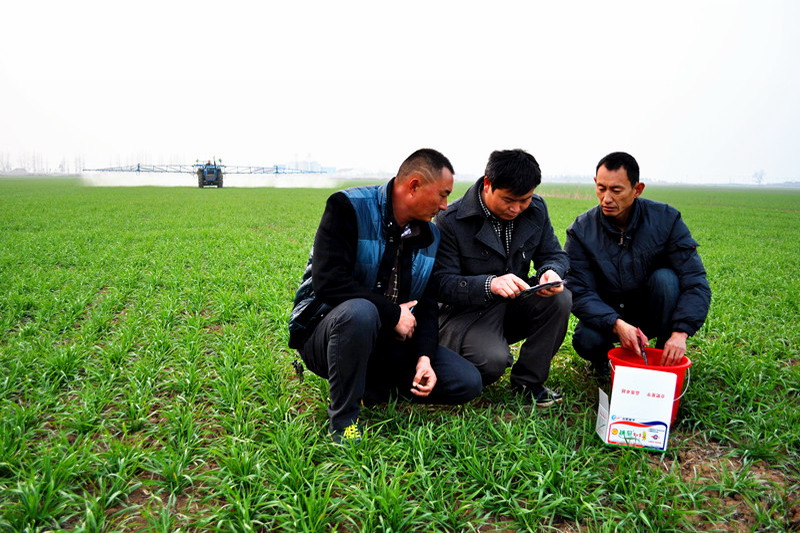 126,在潘村湖农场一块大田,农艺师刘家波正在指导家庭农场开展小麦机械化除、微肥喷施等田管作业。在新一轮小麦高产攻关活动中,农场60多名农技人员分片包田到户,手把手、面对面全程指导家庭农场职工将各项增产技术措施落到实处,被职工亲切地称为不请自到、贴心服务的田保姆。(杨登宏)