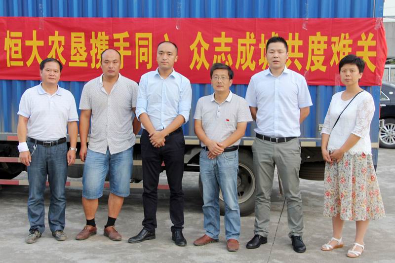 720晚,恒大地产集团合肥有限公司投资总监陈华带队到安徽华阳河农场开展防汛救灾慰问,代表该公司捐助了矿泉水200箱、精制大米1吨、菜油1000斤等救灾物资。