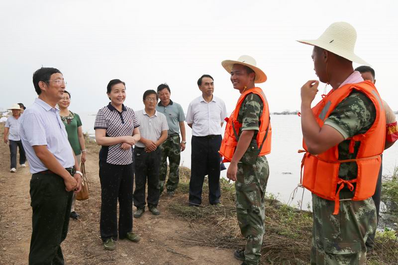 李素萍又前往一分场迎湖大堤,看望了坚守在防汛一线的农场干部职工和武警部队官兵。(程来宝)