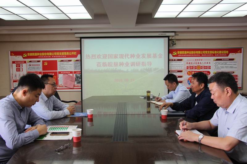 927,国家现代种业发展基金副总经理冯司光一行到皖垦种业调研改革发展工作,寻求双方深层次合作。安徽农垦集团副总经理王占廷会见了国家种业基金一行