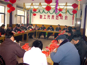 职工代表恳谈会是大圹圩农场每年春节前必开的一 次让广大职工全面参与企业民主决策、民主管理, 充分发挥职工聪明才智,广泛征集职工意见和建议 的一次重要会议。