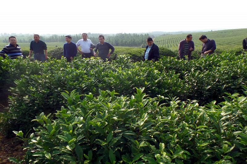 1016,安徽农垦敬亭山茶场在周王分场举办茶园秋管促进会,总农艺师陈雪松率生产科全体同志、各分场负责人参加,现场参观了该分场更新改造茶园。