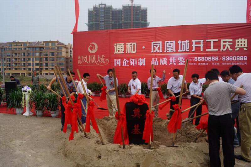 926,安徽农垦通和地产集团位于凤台县的通和·凤凰城项目开工奠基。通和地产集团总经理朱正学会同省农垦集团土地规划建设部、东风湖农场负责人,凤台县规划、建设、房产等相关部门领导,设计、施工、监理单位代表,省市媒体记者参加了开工庆典及营销中心开放仪式。