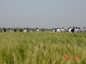 5月20日,滁州地区种业方面的有关领导和农业专家 一行50余人对大圹圩农场在地小麦良种生产进行了 现场观摩。