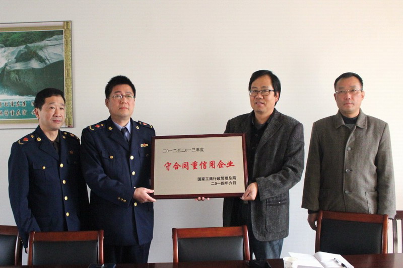1121上午,受上级工商部门委托,蚌埠市工商局副局长姜晓丹一行专程到皖垦食品集团雁湖面粉公司,代为颁发了国家工商总局授予的2012-2013年度守合同重信用企业奖牌。