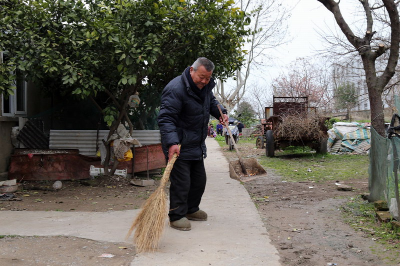 33下午,笔者来到二分场华港社区,见到王发洲老人正在公厕外清理垃圾。据分场领导介绍,王发洲既是一位老兵团战士,又是一名新共产党员,如今已独居45年。