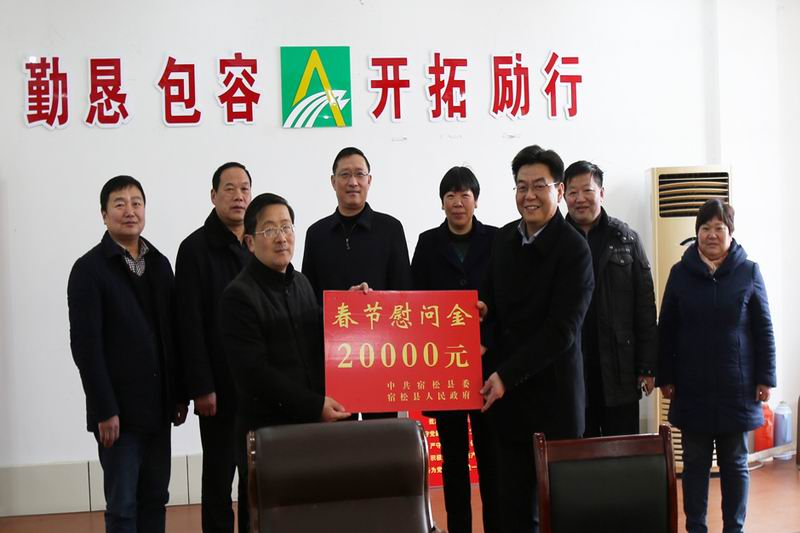 29上午,宿松县委常委、组织部长丁伯赞带领人大、政协及民政局负责同志一行,代表县四大班子走访华阳河农场开展春节慰问,送来慰问金,并与农场领导王洪、倪建忠、齐广鹏举行了新一年合作座谈。