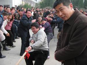 该场组织了文艺宣传队参加了“沿淮五场保持共产 党员先进性文艺汇演”,又组织开展了蓝球、乒乓 球、拔河等比赛活动。场党委在“先教”活动中组 织开展多项活动,寓意深刻。尤其是开展拔河比赛 具有良好的群众基础,时间长、覆盖面大,是传统 的文娱活动。首先要求各党支部组织选拔赛,挑选 10人参加分片比赛,共设四个赛区。最后取前8名到 场部赛场参加决赛,引来了无数职工群众观战。广 大职工不分男女老少都为自己的队伍呐喊助威,场 面十分感人。大家都为场里组织这样活动拍手称 好。场长、党委书记刘国强、副书记林庆年、寿县 “先教”第一督导组副组长汪正群及寿县体育局负 责人等参加了整个活动。