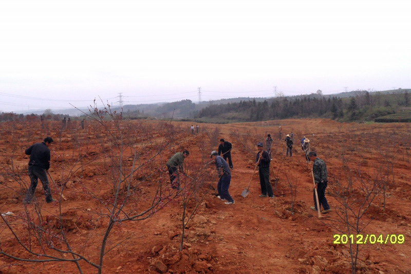 安徽农垦敬亭山茶场根据十二五高效农业发展规划,目前正在周王分场加紧建设2000亩城市景观苗木花卉生产基地。该示范园毗陵周王分场场部,占地面积约50亩,主栽红枫、桂花、广玉兰、红叶石楠等品种,计划栽植高档苗木1万株,投资30余万元。示范园整地工作现已全面结束,开始栽植部分苗木,预计于4月中旬完工。图为职工正在栽植红枫(邱宏文)