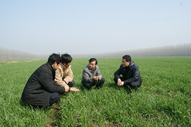 眼下,安徽农垦大圹圩农场 1.6万余亩小麦陆续进入拔节期。为克服前期低温连阴雨天气给小麦田管带来的诸多不利影响,连日来,农业基层单位根据农场统一部署,紧紧抓住天气晴好、气温回升的有利时机,迅速行动,结合农技部门培训和技术指导,因地、因苗制宜,选择化除药剂,组织一切力量,全面展开麦田除草及病虫防治工作,计划328日前完成全场麦田春季化除工作。图为:农场总农艺师童俊会带领农业投资发展中心、农业基层单位有关人员实地查看田间小麦苗情和草情。(夏庆芳)