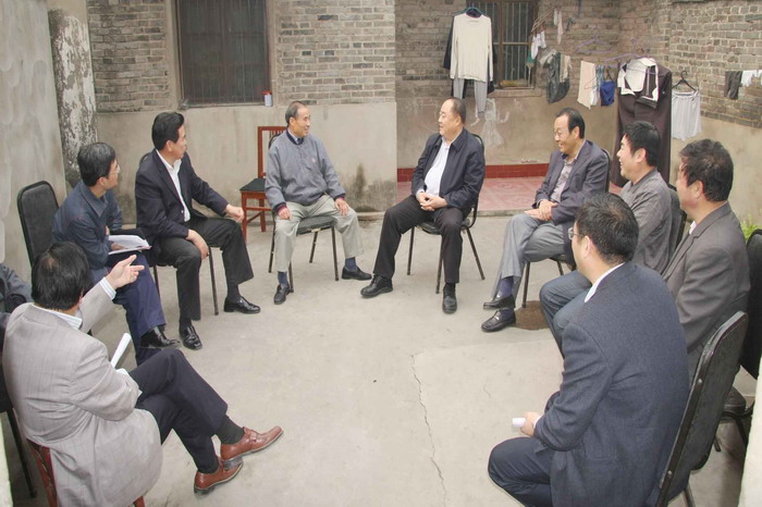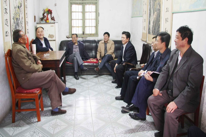 许崇信一行首先来到省农垦系统规模最大的西湖花园职工小区,考察农场职工的居住条件,走访了小区居民五一劳动奖章获得者刘顶海和赵俭波。在与劳模交谈中,许主任了解到,近几年农场结合移民迁建、廉租房建设、危旧房改造等项目,已建成各类成套保障性住房3800套近35万平方米占整个职工住房的78%,职工居民的住房条件和生活质量得到了明显改善。他表示十分欣慰,对农场民生工程建设所取得的成绩给予了高度赞誉。接着,许主任看望了老农业科技人员代表、寿农01-02小麦育种人闫映红,认真了解了有关种子的科研、生产、加工及经营情况,详细询问了当前皖垦种业发展中存在的困难和问题。许主任不顾疲劳,又继续走访了靳传亭、顾益善等离退休老干部,每到一户许主任都嘘寒问暖,从日常衣食住行到生病就医保障,都要询问和了解。老干部们十分感动,纷纷和他谈起了自己的所思、所盼、所忧。许主任希望他们保重身体,珍惜美好生活,继续为农场建设发展发挥余热。最后,在老党员代表梅忠祥家的小院里,许主任与大家促膝谈心,一起回顾了农场近些年来的巨大变化,探讨了下一步加快农场发展的新思路和新举措。庭院内的气氛热烈祥和,不时响起爽朗的笑声。