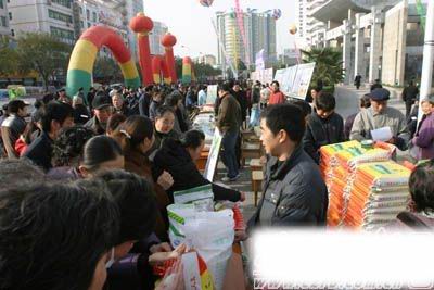在12月16日滁州市首届粮油精品展览会暨滁州市第三届优质稻米评选会上,大圹圩农场经营科精心组织送展的产品,受到滁州市民的推崇,“一把香”糯米、水磨糯米粉、营养米、软玉粳米等农场开发的产品,被抢购一空(见图)。特别是大圹圩农场生产的营养米在专家评选会上,受到与会专家的一致好评,专家结论:无论从外观品质和口感品质及营养成份上,都是目前最好的长粒型粳米。专家们希望农场抓紧定审,规模生产,满足广大市民需求。