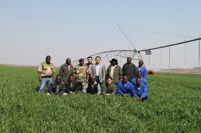727津巴布韦农业部秘书长Masoka一行4人访问考察了皖津公司温亚尼和SISI农场,安徽农垦皖津农业发展公司董事长韩大鸣、副董事长伊柯阮姆巴将军、副总经理拓扎伊上校给予了热情接待。Masoka对皖津农场当前小麦长势表示赞许,认为,皖津公司经营团队管理工作扎实高效,经营计划脚踏实地,背靠中国巨大的供应市场,面向津国广阔的消费市场,开展多种经营的优势明显。Masoka表示,津国政府相关部门将积极配合并帮助皖津公司完备相关法律手续,他还就未来小麦销售提出了合理化建议。