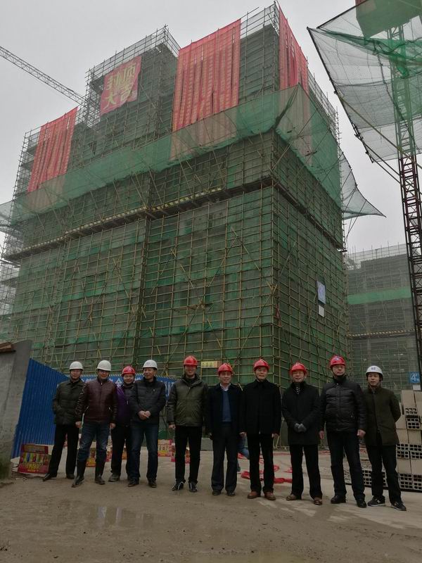 1227,随着最后一方混凝土完成浇筑,阜农场危房改造项目3#楼率先封顶,标志着该项目建设取得重大战果。场领导程刚、卢庆忠、林文亮及阜南县人大领导李国庆到场督查。
