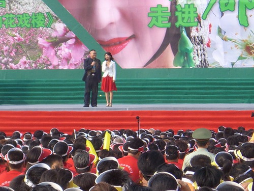安徽电视台“相约花戏楼”是中国果蔬加工砀山论坛的压轴项目。节目由著名笑星范军及安徽电视台著名节目主持人马滢主持,国内著名演员童祥苓、吴亚玲、朱世慧、王希玲、金不换等登台献艺,砀山县1万多名观众观看了演出,砀山果园场作为一个方阵也观看了演出。