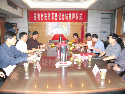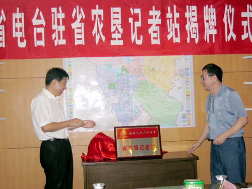 安徽农垦集团公司副总经理王占廷和省广播电台副台长牛求群分别在会上发表了热情洋溢的致词并为记者站揭牌和向受聘担任记者的王洪等三位同志颁发了聘书。